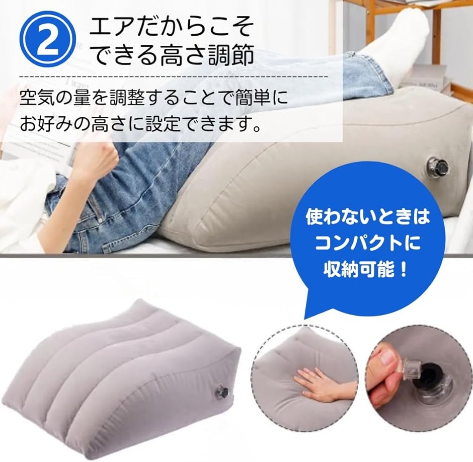 「エアータイプの足枕」足を心地よい高さに保ち、姿勢を安定させることができます。
