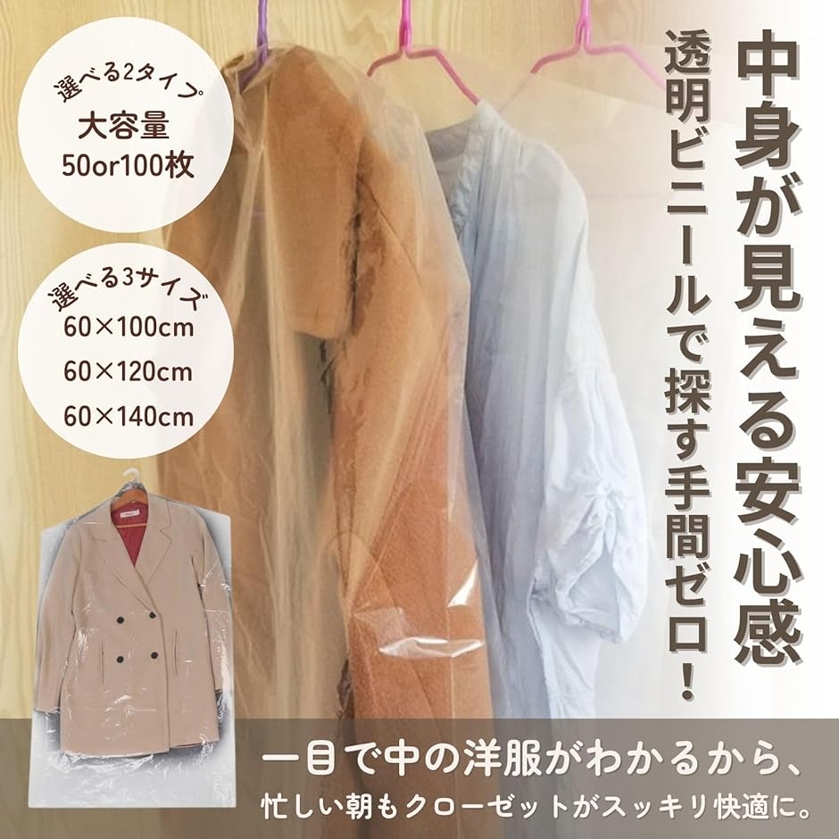 | 商品名 | 衣類カバー 洋服カバー 衣装カバー 使い捨て ビニール 透明 |