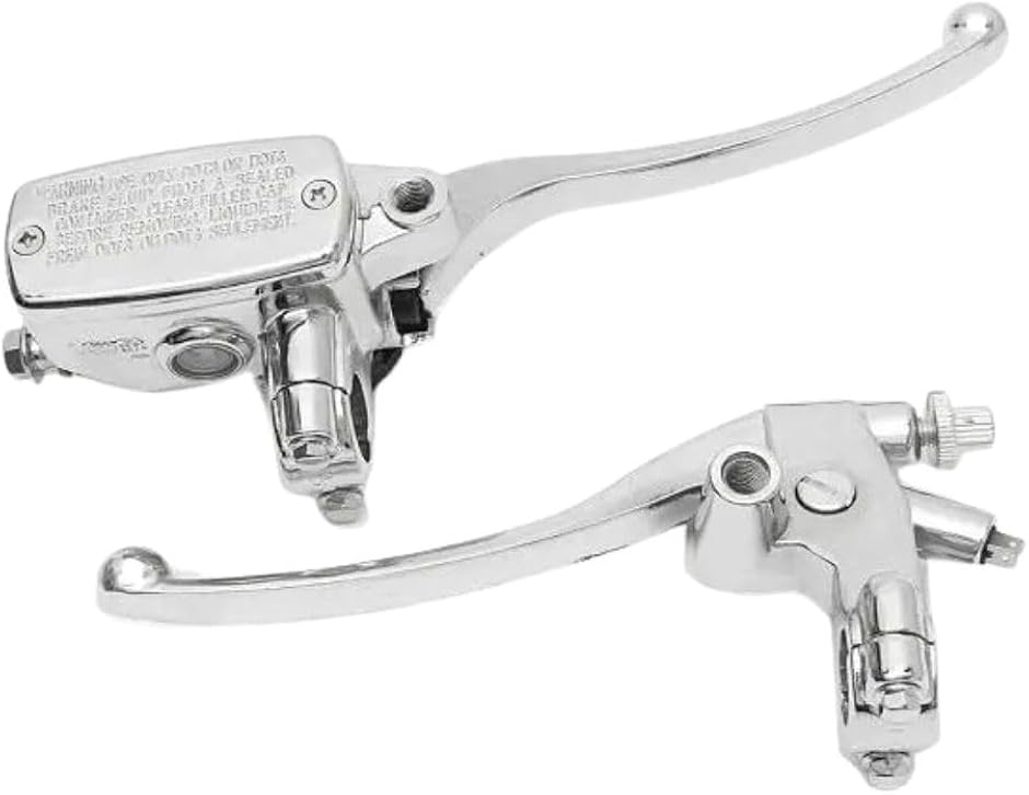 *「製品仕様・対応車種」 ・材質:アルミ合金(メッキ仕様) ・左右セット:クラッチレバー(左)/ブレーキマスターシリンダー(右) ・ブレーキ:油圧式 クラッチ:ワイヤー式 ・対応車種:多くのオートバイ、ダートバイク、ピットバイク、ATVなど