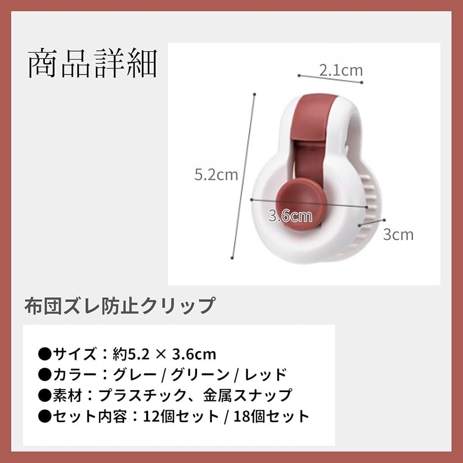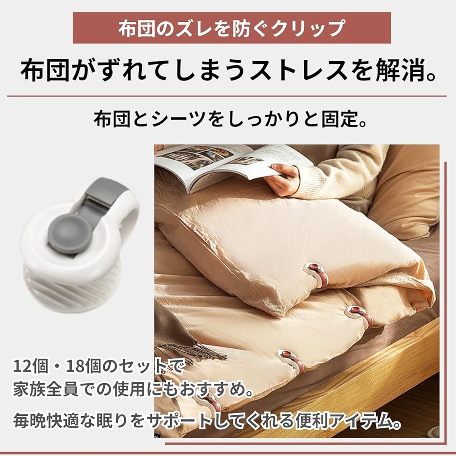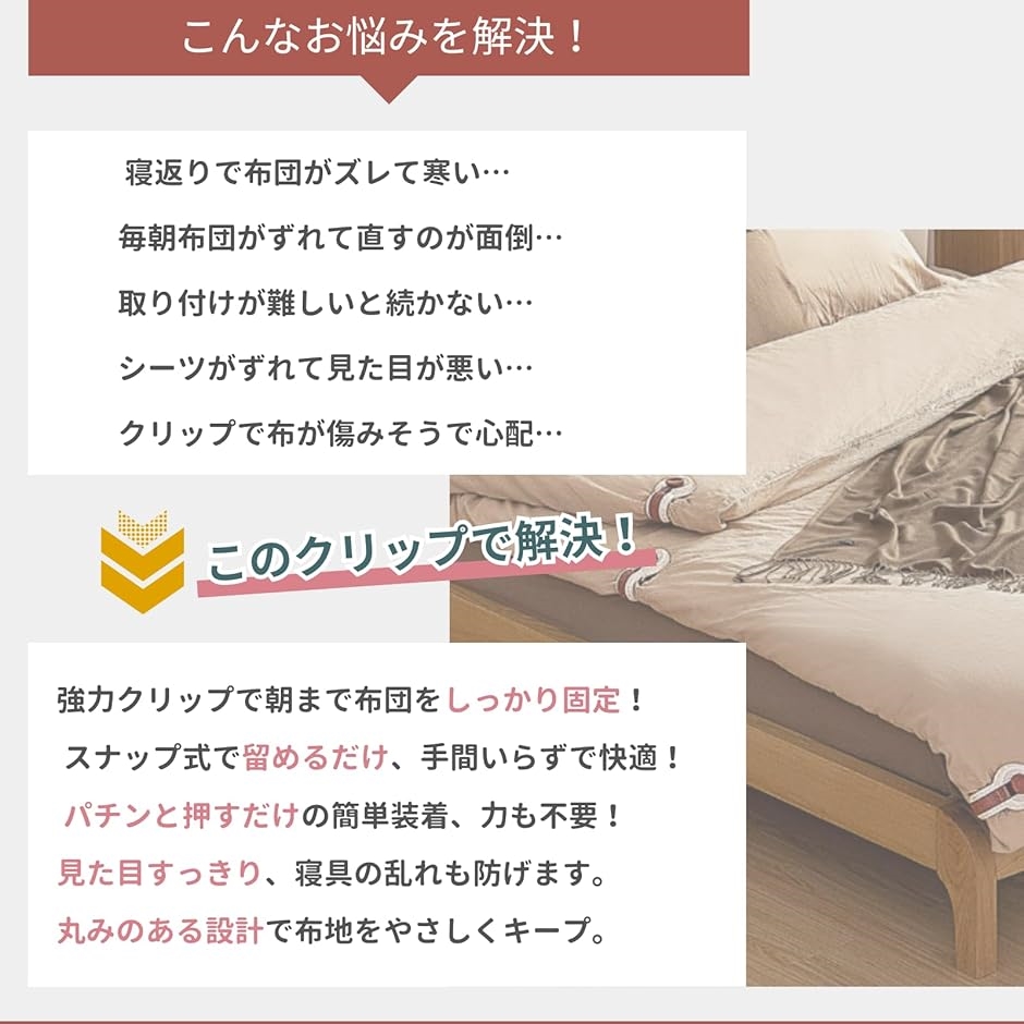 | 商品名 | 布団 ずれ落ち クリップ 掛け布団カバー 防止 滑り止め 留め具 固定 軽量 強力 再利用可能 ズレ防止 ブランケット用 |