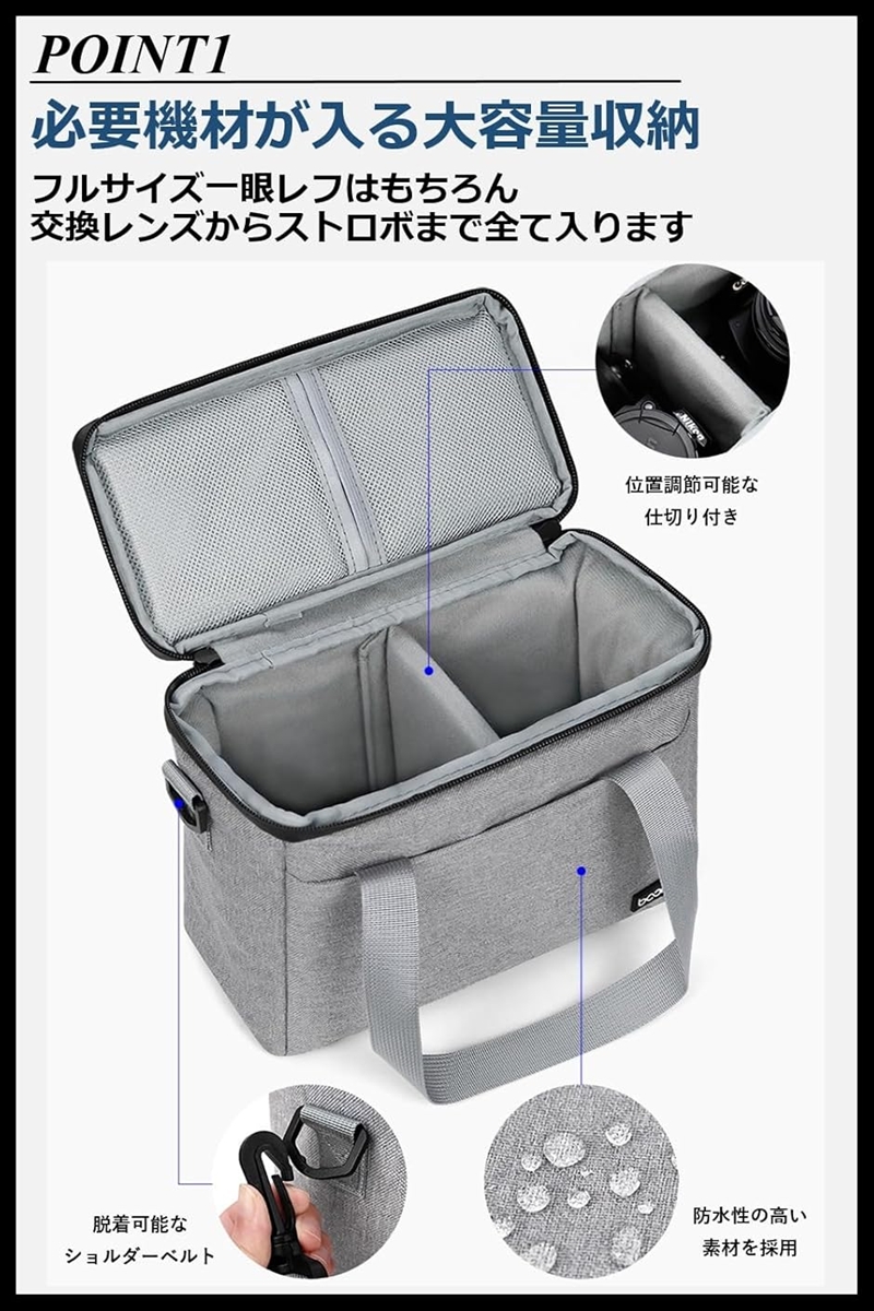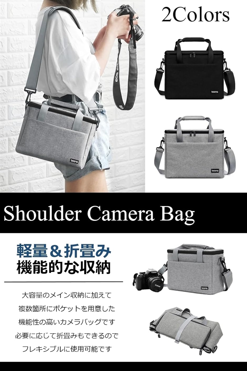 | 商品名 | カメラバッグ ショルダー 折りたたみ 大容量 軽量 肩掛け 斜め掛け 一眼レフ ミラーレス 仕切り調節可能 |
