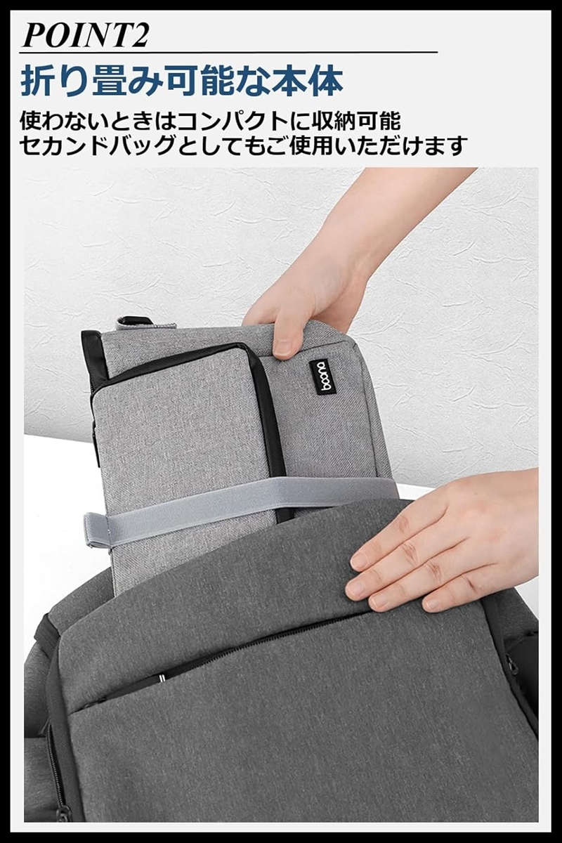 旅先でのサブバッグとしてはもちろん、クローゼットのデッドスペースも有効活用できる省スペース設計です。