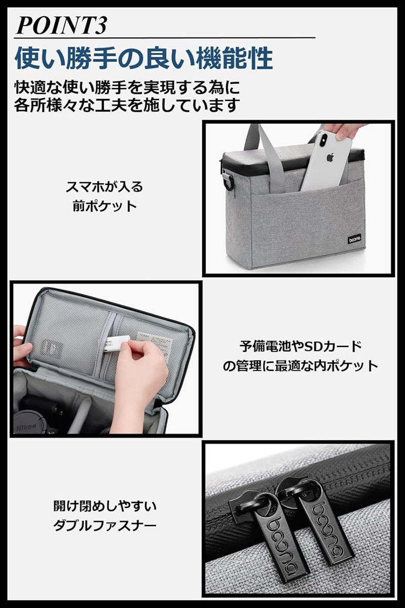 高性能な機材を安全に持ち運び、かつ撮影を快適にする多機能カメラバッグです。