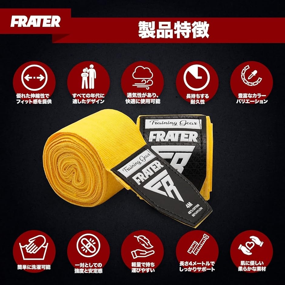 | 商品名 | Frater プロ仕様 バンテージ - ボクシング & バンテージ キックボクシング 向け手首保護ラップ ハンドラップ バンテージサポーター |