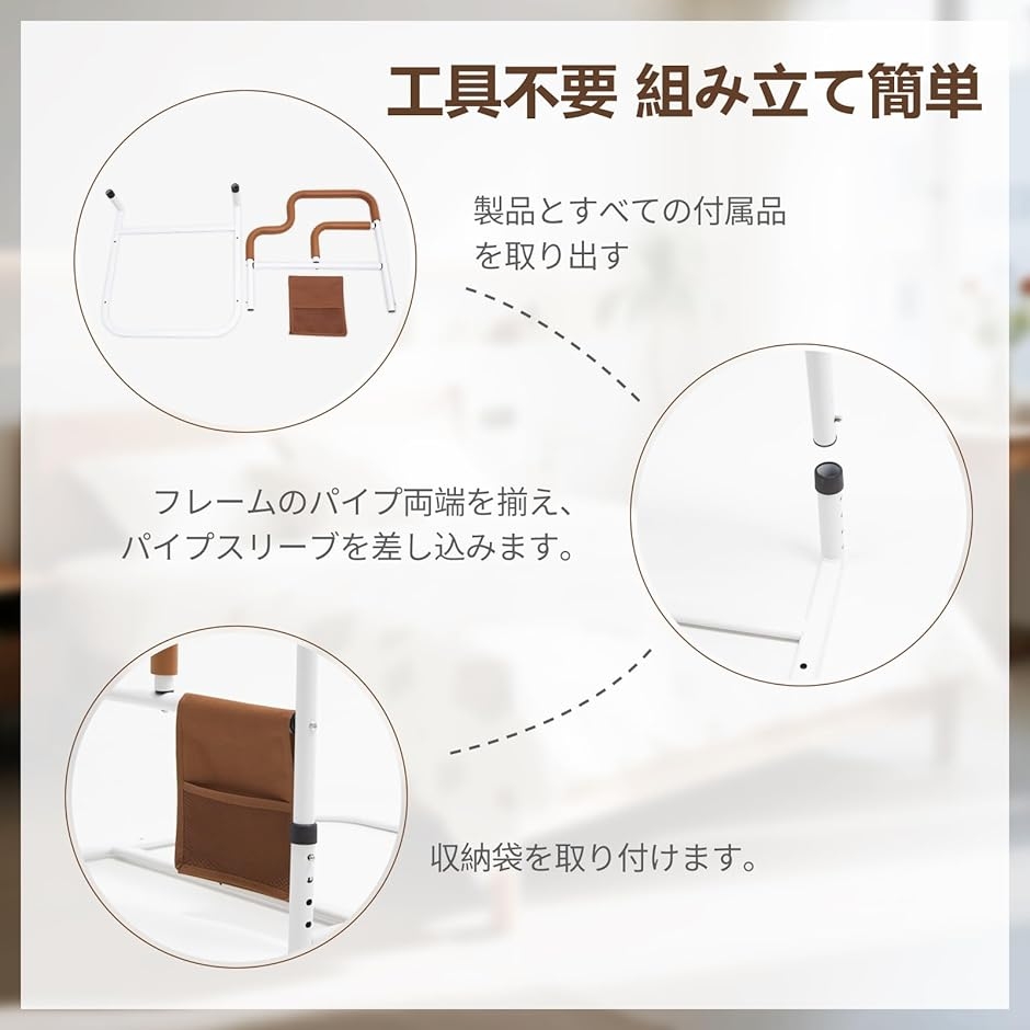| 商品名 | ベッドガード 起き上がり手すり 介護用 転落防止 立ち上がり補助 長さ調節可 収納ポケット付き 軽量 丈夫 簡単組立 日本語説明書 |