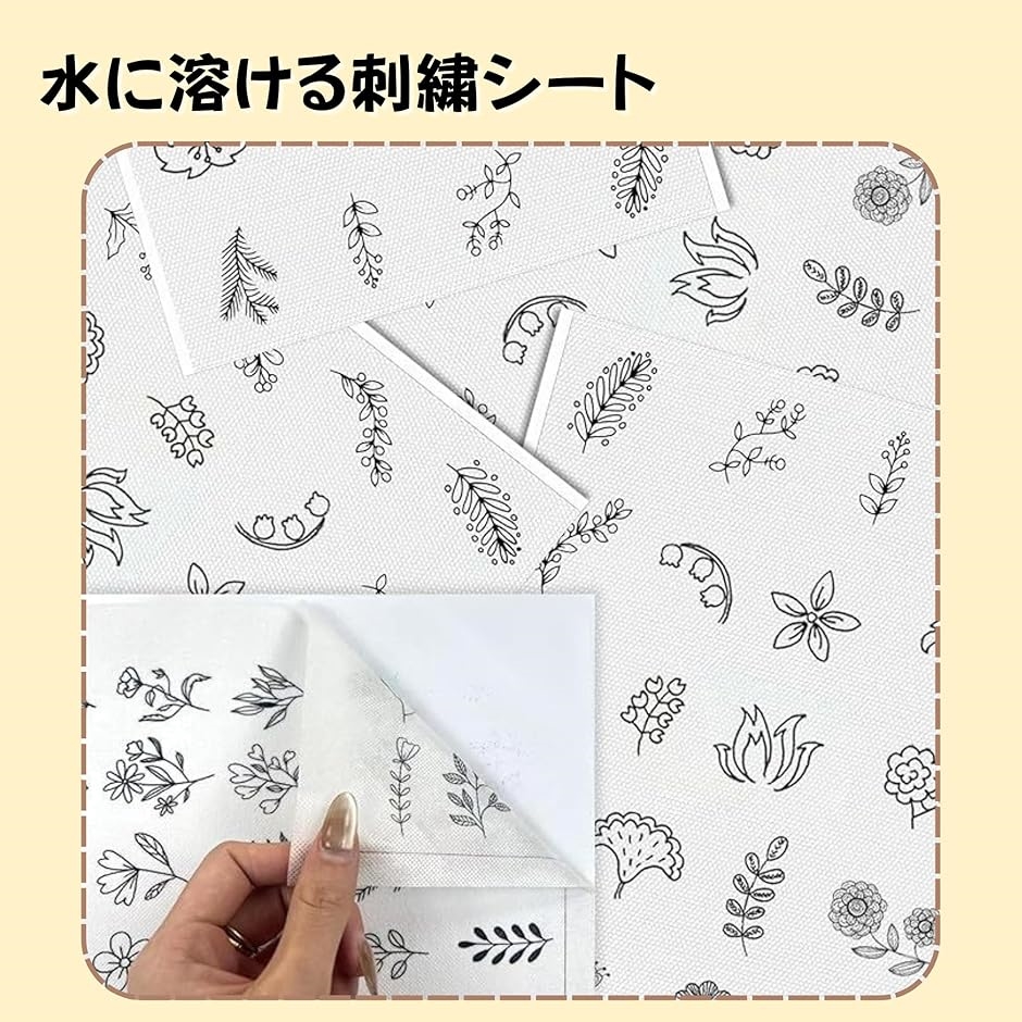 | 商品名 | 水に溶ける 刺繍シート 刺繍補助シート 台紙 レース・アップリケ用 初心者向け しっかり安定 裁断しやすい 5枚セット |
