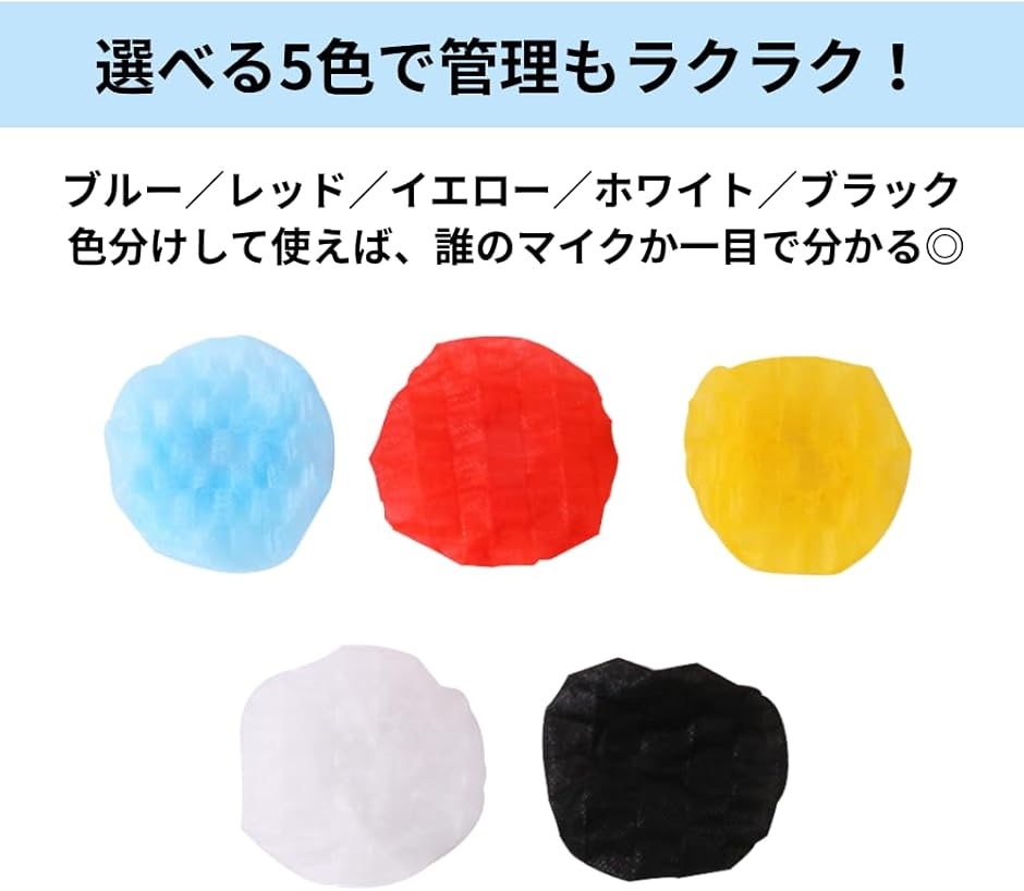 | 商品名 | マイクロフォンカバー 使い捨て 衛生的 5色 100枚 防音 ノイズ防止 カラフル 使いやすい |