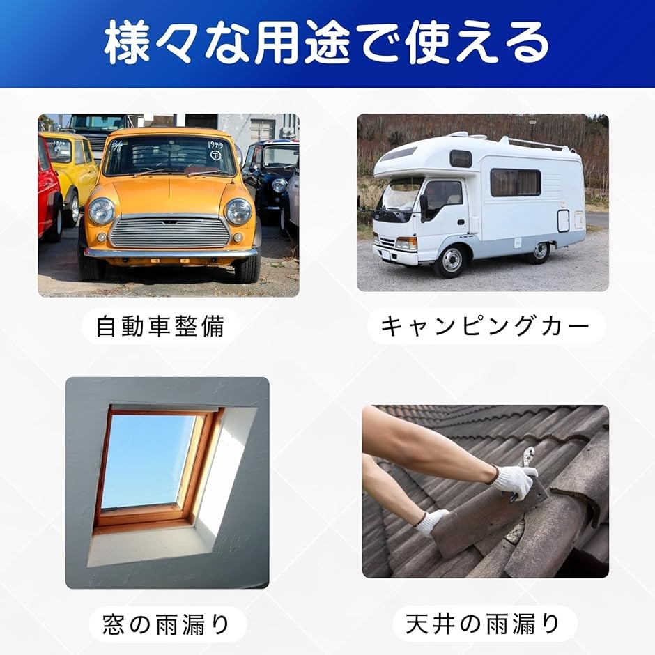 「住宅やキャンピングカーにも」屋根や窓枠の隙間補修、キャンピングカーやトレーラーの外装シーリングなど、屋外の防水補修など、様々な用途でご使用いただけます。