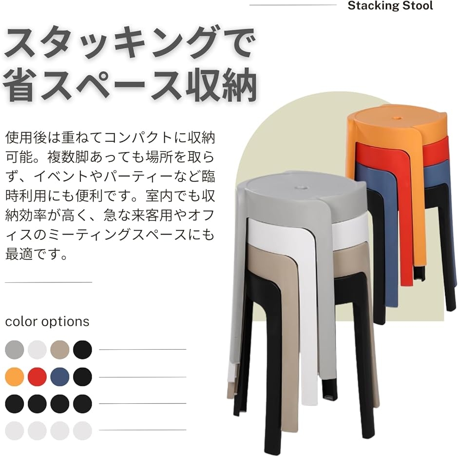 「スタッキングで省スペース」 スタッキングチェアは、使用後に重ねられる設計で収納効率が高く、複数脚あっても場所を取りません。