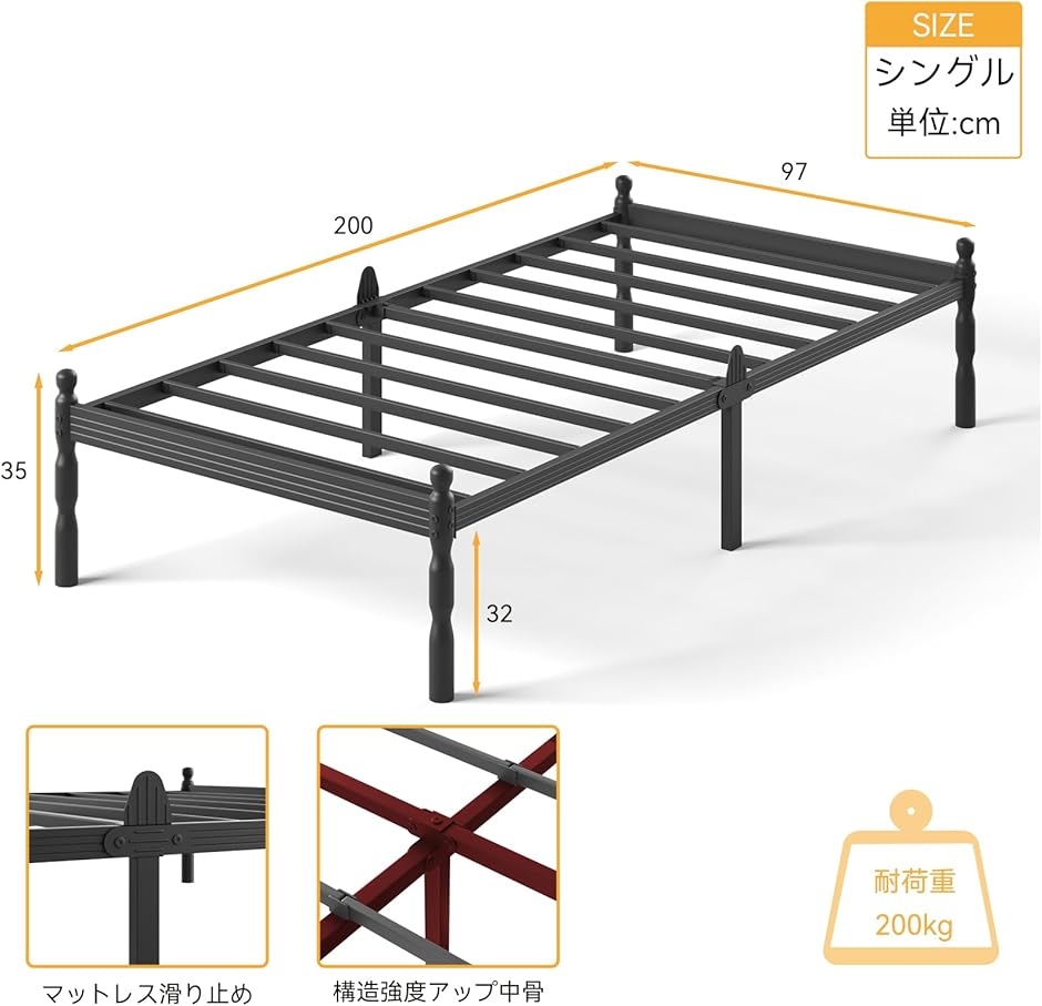 | 商品名 | ロサキキ ROSAKIKI ベッドフレーム シングル パイプベッド スチール製 すのこ構造 通気性 静音設計 高耐久 ベッド下収納 高さ35.5cm 組立簡単 |