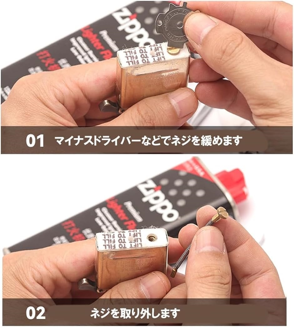 レギュラーサイズのほぼ全てのジッポーに対応しています。