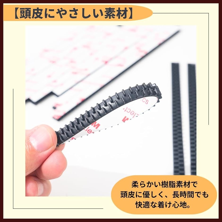 「頭皮にやさしい素材」柔らかい樹脂素材で頭皮に優しく、長時間でも快適な着け心地。