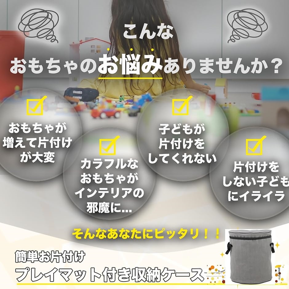 | 商品名 | おもちゃ収納 & プレイマット 2WAYセット直径150cm お片付けマット 一体型 収納ボックス 収納バケツ おもちゃ箱 簡単お片付け 巾着式 ブロック ぬいぐるみ おままごとに最適 イエローマット |