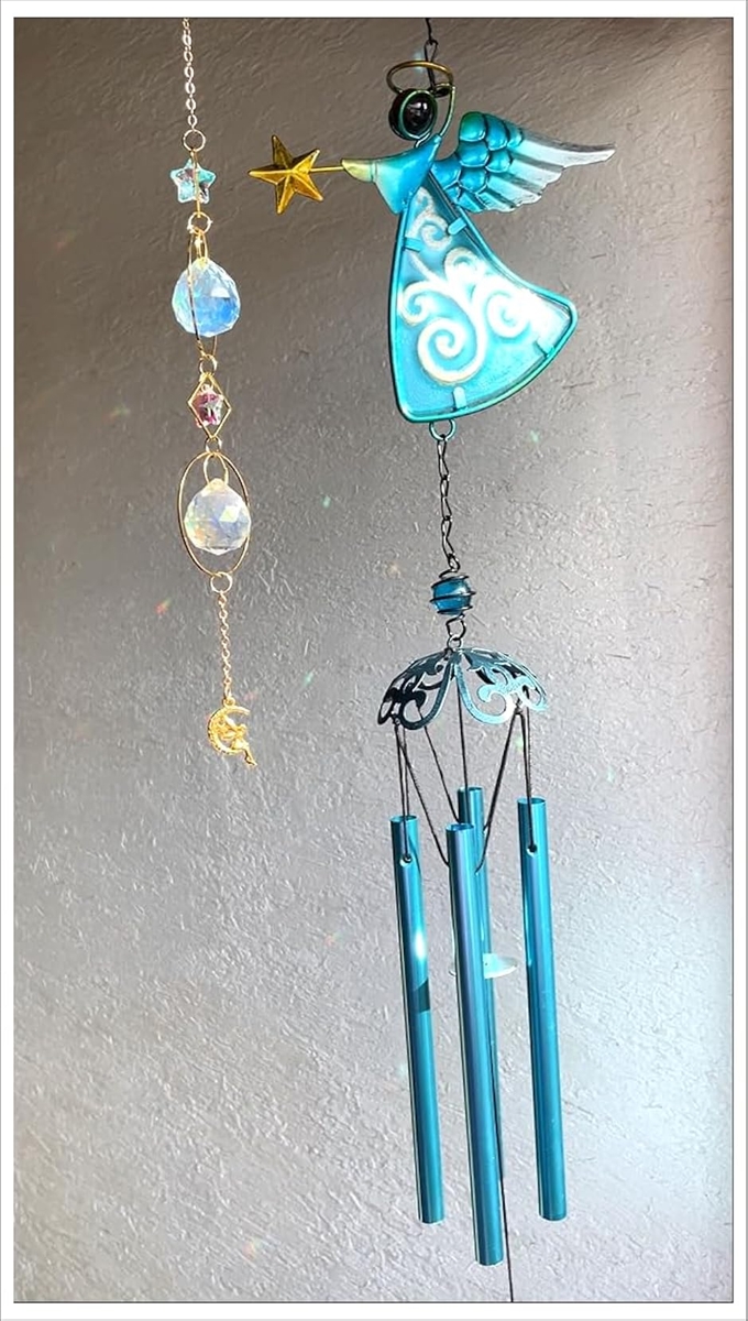 「天使xサンキャッチャーx風鈴で癒し空間を演出するインテリア雑貨」 天使モチーフのウィンドチャイムとサンキャッチャーは、窓辺や玄関、リビングに彩りと癒しを与えるインテリアアイテム。