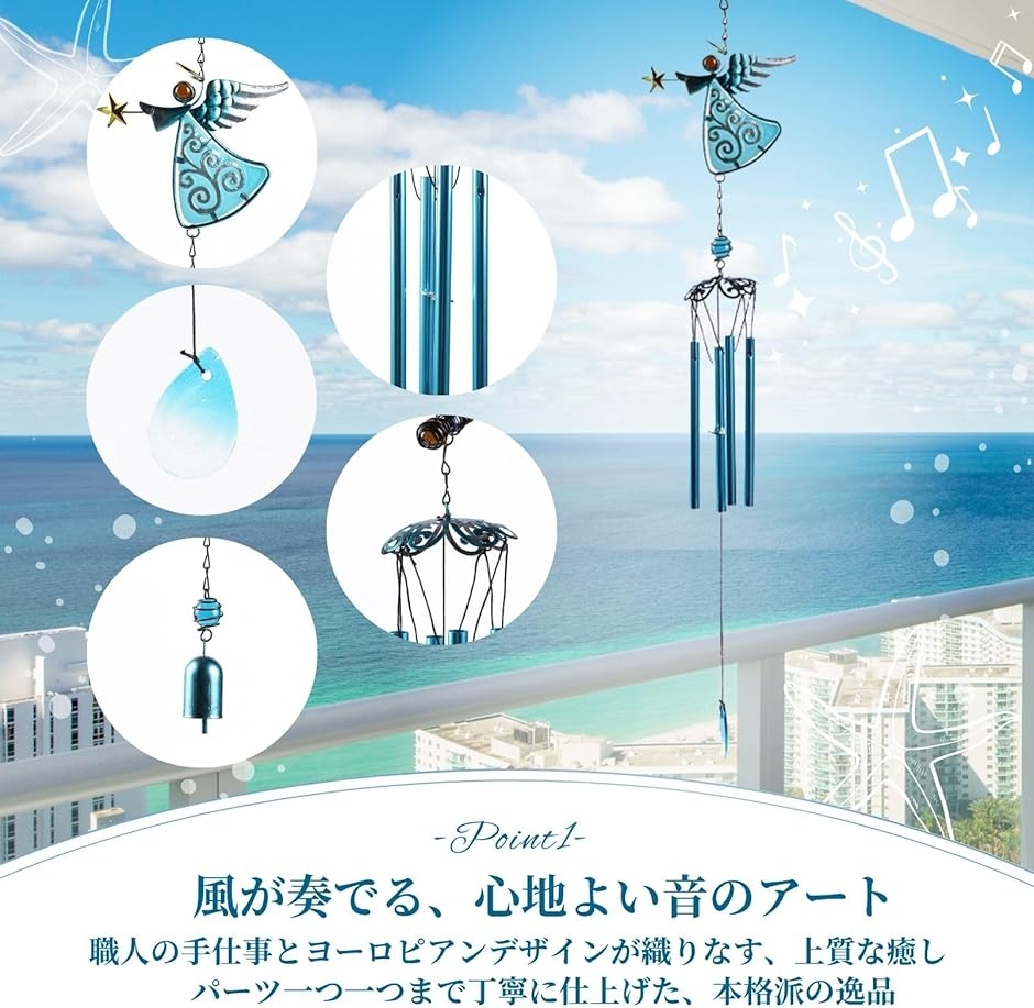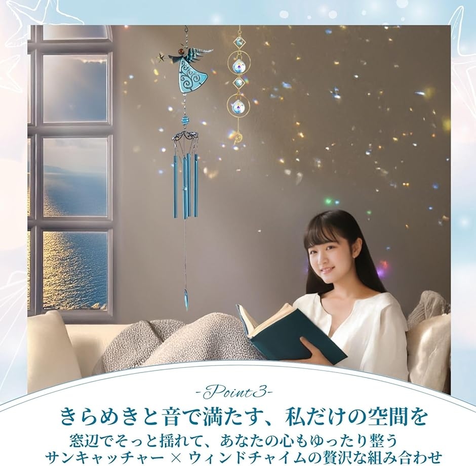 「天使の佇まいと音と光が心をときほぐす、極上のヒーリングインテリア」 そっと揺れる天使と、風に乗る透明な音、光の反射が心を包み込み、自然とリラックスできる癒しの時間を作ります。