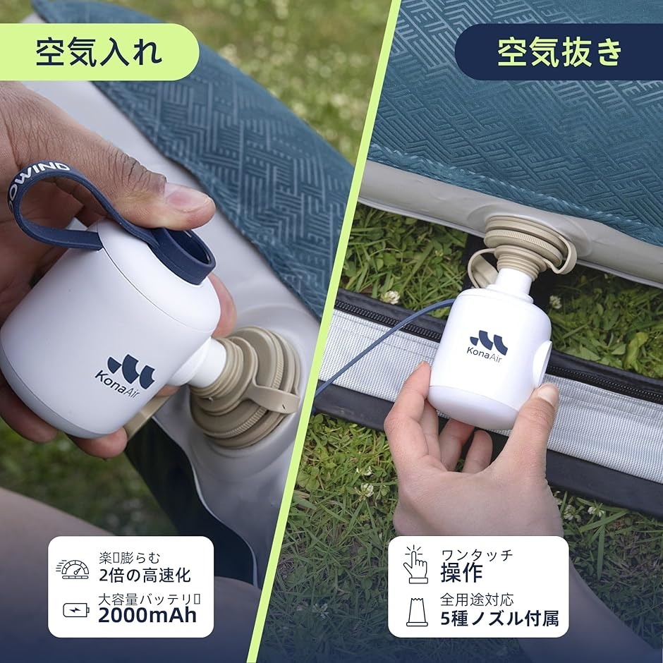 | 商品名 | 電動エアーポンプ 空気入れ 空気抜き 高速充填 USB充電式 携帯エアーポンプ 日本語取扱説明書付き Kona Air |