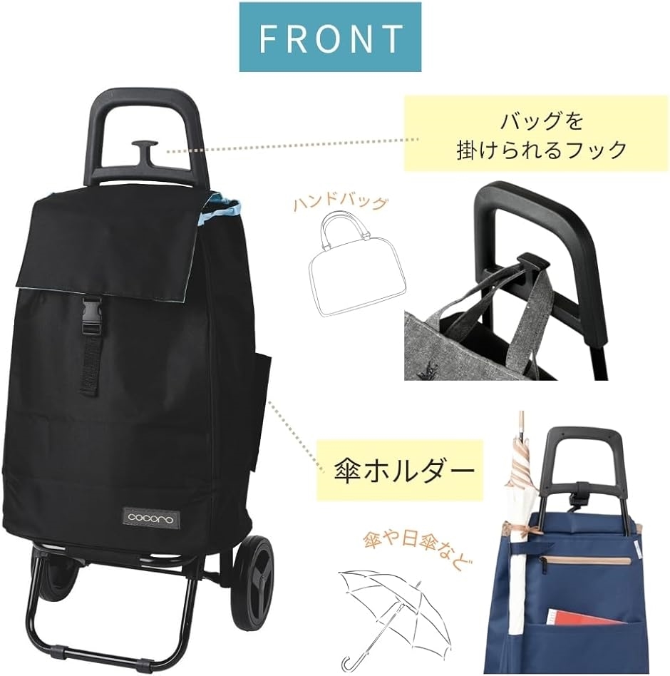 | 商品名 | ショッピングカート 買い物カート 保冷 保温 Sサイズ 軽量2kg 大容量37L 小柄な方にも使いやすい 大きなタイヤでラクラク 折り畳み式 収納 荷物フック Cocoro コ・コロ |