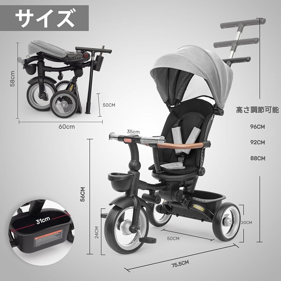 | 商品名 | 子供用三輪車 7in1 三輪車 折りたたみ 手押し棒 6カ月〜5歳 おしゃれ シートベルト付き 調整可能 コンパクト 乗用玩具 キッズバイク おもちゃ プレゼント |
