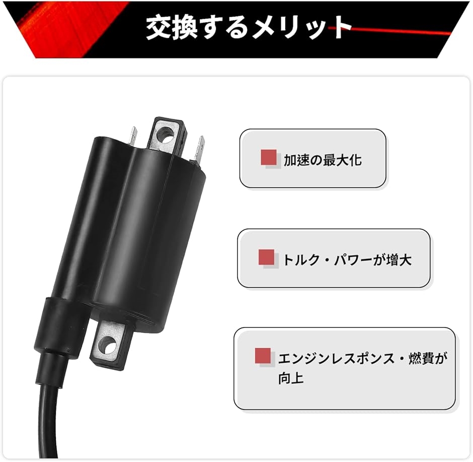 | 商品名 | 互換品イグニッションコイル 80mm取付ピッチ対応 ビラーゴ250/400 ドラッグスター250/400 TRX850 マジェスティ250C SRV250 SRX400など幅広いヤマハ車種対応 |