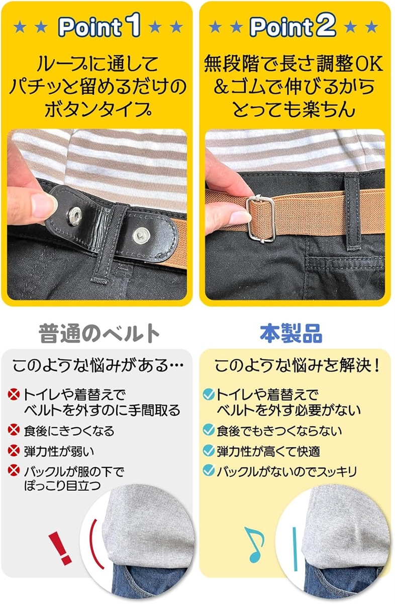 | 商品名 | ゴムベルト キッズ ベルト 子供用 バックルなしベルト ボタン改良 調節可能なフリーサイズ。トイレもラクラク |