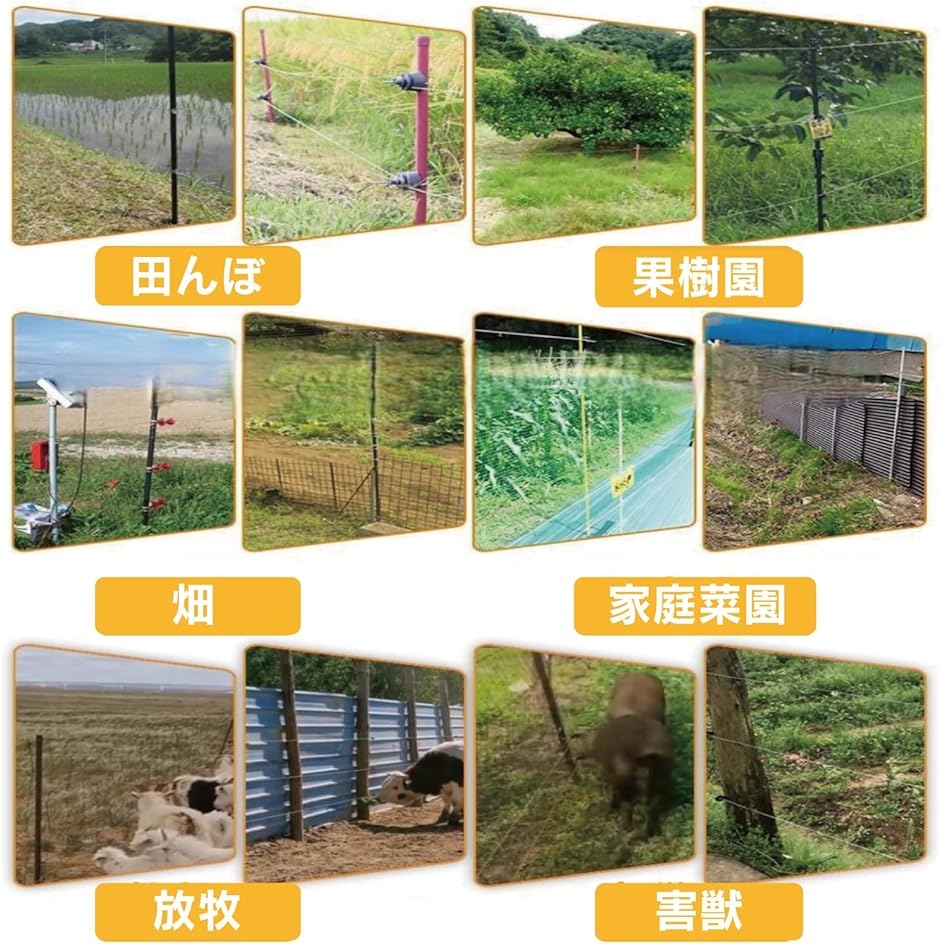 電気柵とは、田畑や牧場の周りに電気を通した柵線を設置し、動物が電気柵に触れた際にショックを与え野生動物の侵入又は家畜を外に逃がさない役割が有ります。