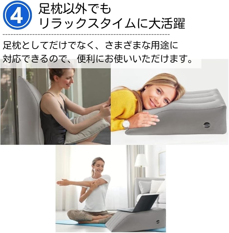 「エアータイプの足枕」足を心地よい高さに保ち、姿勢を安定させることができます。