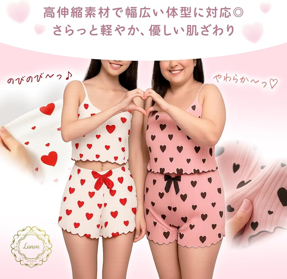 | 商品名 | ルノン 女装 下着 上下セット 男の娘 ギャルキャミソール/ショート パンツ / 2点セット可愛い ハート柄 おとこの娘 服 コスプレ 寝巻き パジャマ 部屋着 ルームウェア |