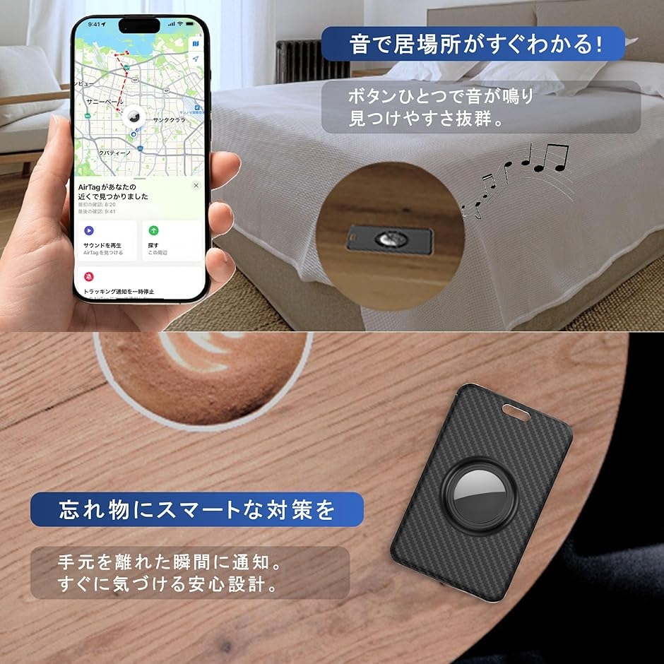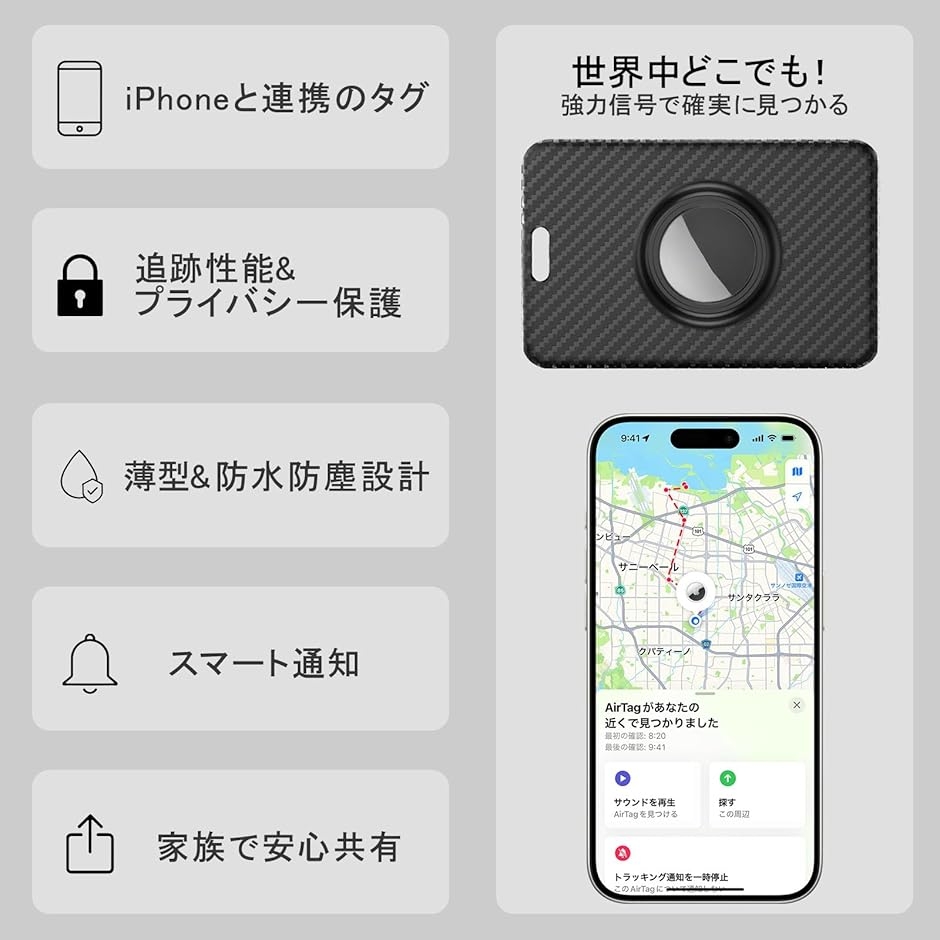 「紛失防止機能」AirTagをケースに装着することで、万が一の置き忘れ時もiPhoneの「探す」アプリですぐに見つけることができます。