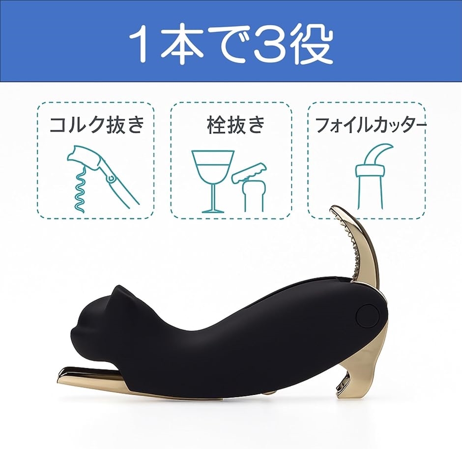 「ワインオープナー ソムリエナイフ 2段式 ネコ型 多機能」