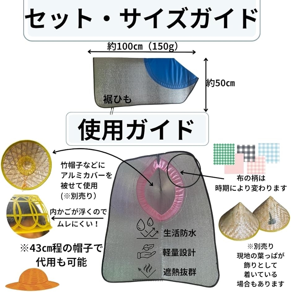 ベトナムなど暑い地域で使用されている伝統的な「竹編み帽子」に、遮熱アルミカバーをセット。