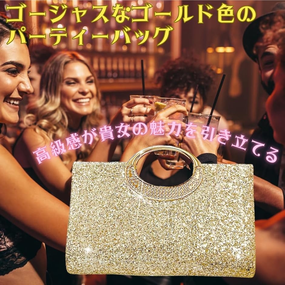 高級感溢れるオシャレなゴールド色のパーティーバッグです。