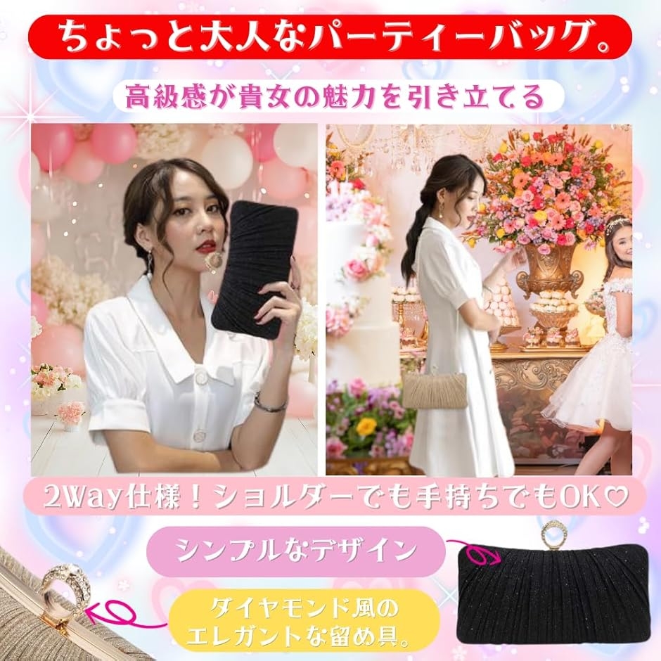 | 商品名 | 結婚式 バッグ クラッチバッグ パーティーバック チェーン付き フォーマルバッグ 3WAY ハンドバッグ 披露宴 |