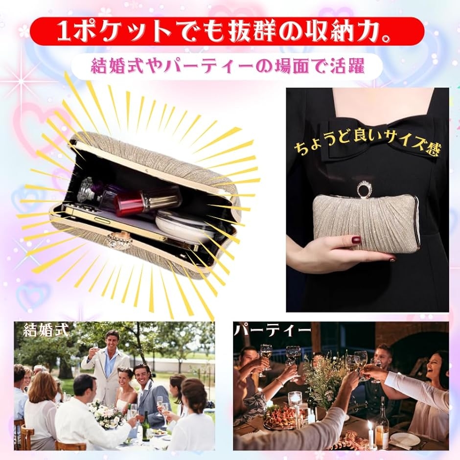 | 商品名 | 結婚式 バッグ クラッチバッグ パーティーバック チェーン付き フォーマルバッグ 3WAY ハンドバッグ 披露宴 |
