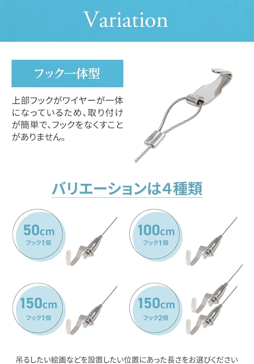 「高さ調節が自由」ワイヤーの長さを自在に調整でき、額の位置や展示高さを素早く変更できます(高さ調整機能)。