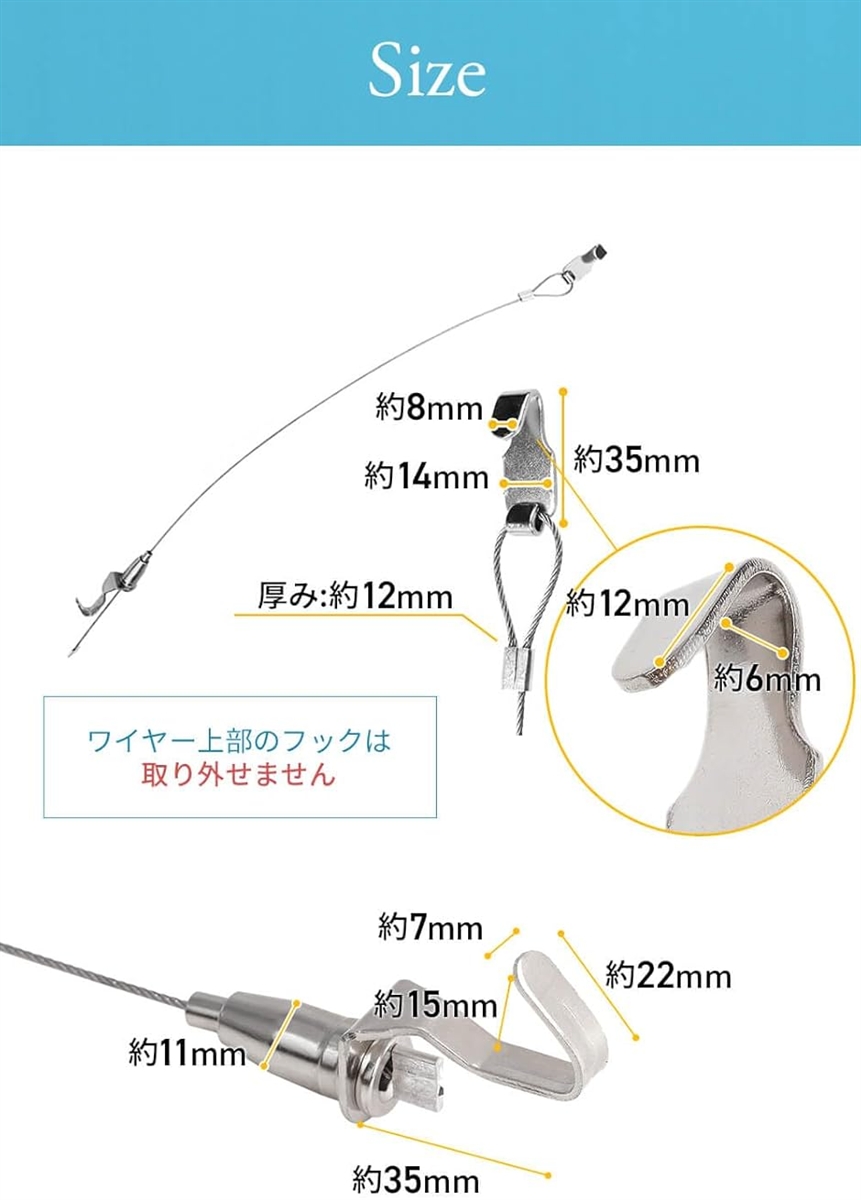 | 商品名 | ピクチャーレール ワイヤー フック 一体型インテリアコーディネーター監修 耐荷重40kg 高さ調節 |