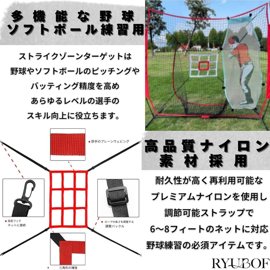 | 商品名 | RYUBOF ストライクゾーンターゲット 野球 練習 バッティング ピッチング ネット トレーニンググッズ 投球用品 道具 ターゲット ストラックアウト ソフトボール 羽 スポーツ用品 マシーン ボール |