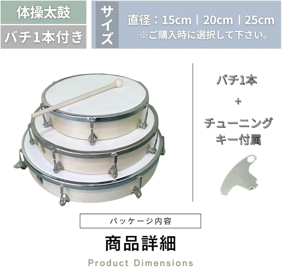 | 商品名 | 体操用太鼓 小太鼓 運動会 発表会 応援グッズ チューニングキー バチ付き 直径25cm |
