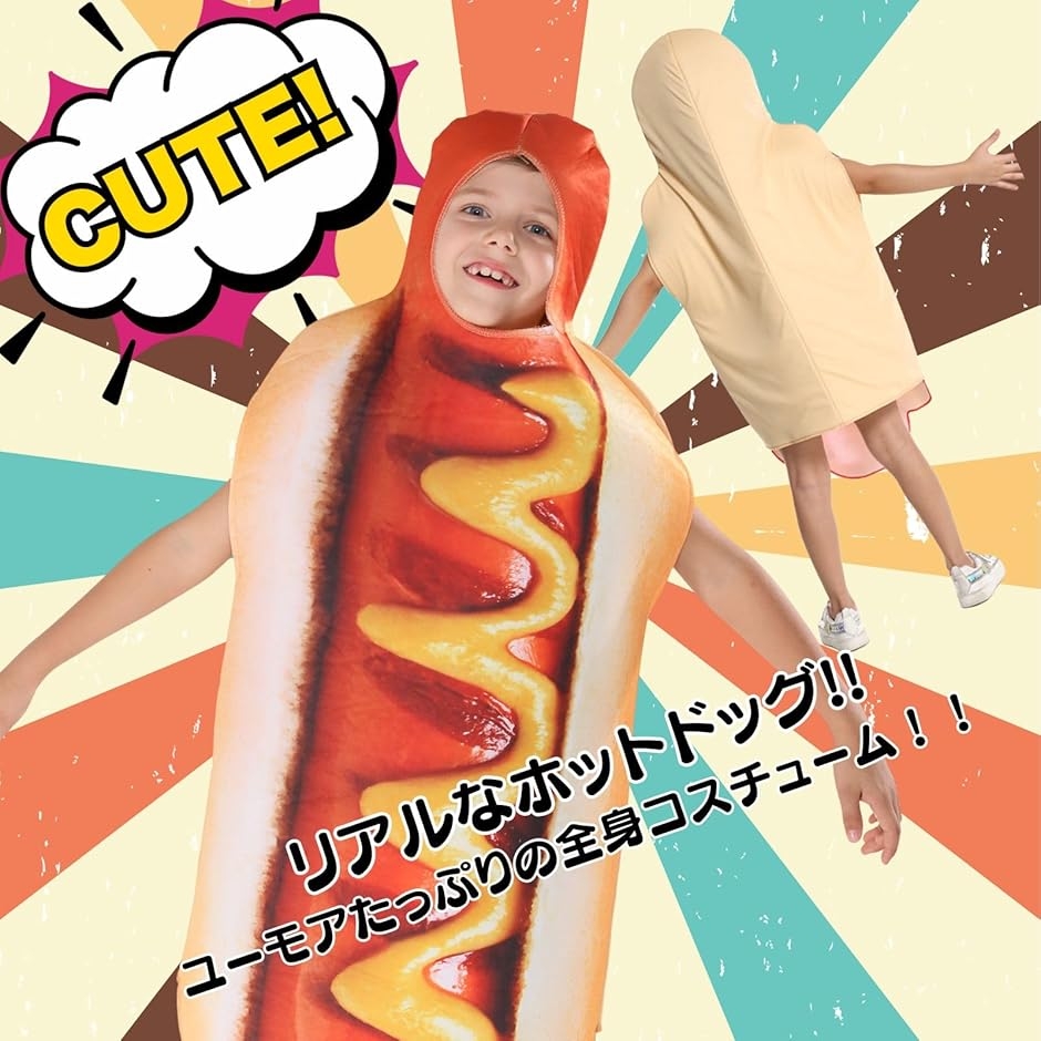 | 商品名 | ホットドッグ コスプレ 子供用 着ぐるみ 全身 おもしろ 食べ物 仮装 ハロウィン |