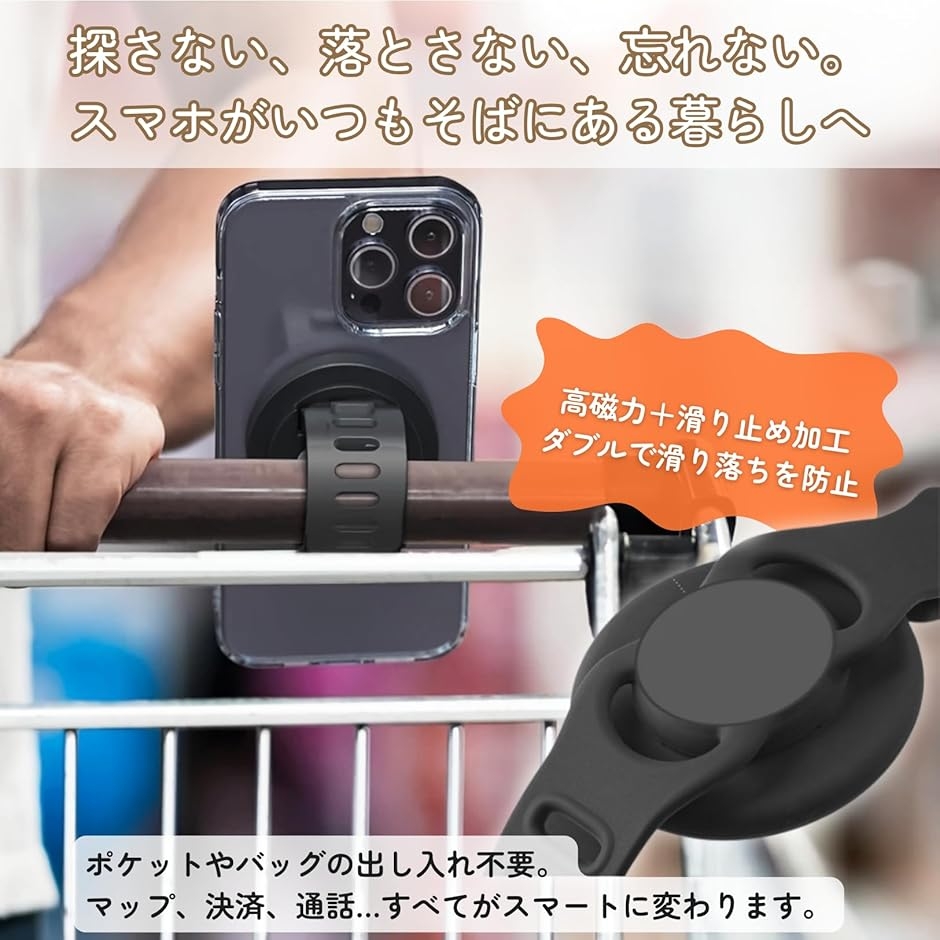 | 商品名 | ベビーカー スマホホルダー magsafe対応 マグネット スマホスタンド 携帯ホルダー 車椅子 自転車 |