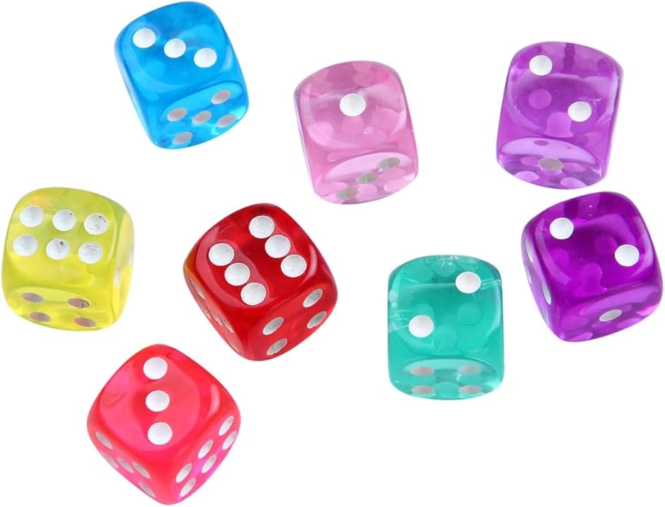 | 商品名 | サイコロ 8個セット 14mm ダイス カラフル 半透明 6面 パーティー スゴロク テーブル アクリル 赤 青 緑 黄 黒 紫 ピンク オレンジ |