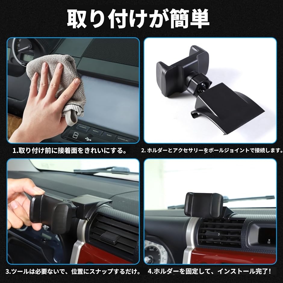 | 商品名 | トヨタ FJクルーザー 2007〜2017年専用 スマホホルダー 車 吹き出し スマートフォン用車載ホルダー 携帯電話ホルダー 送風口 エアコン 固定 車載 スマホ スタンド 360度回転 取り付け簡単 |