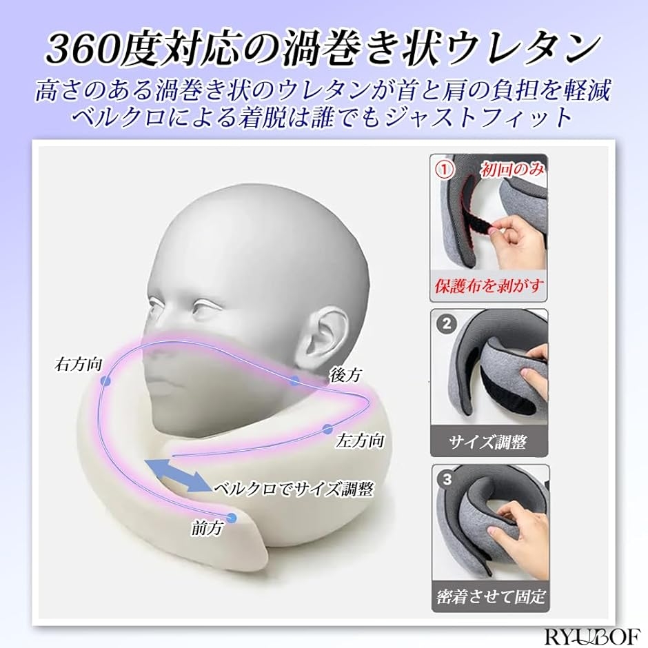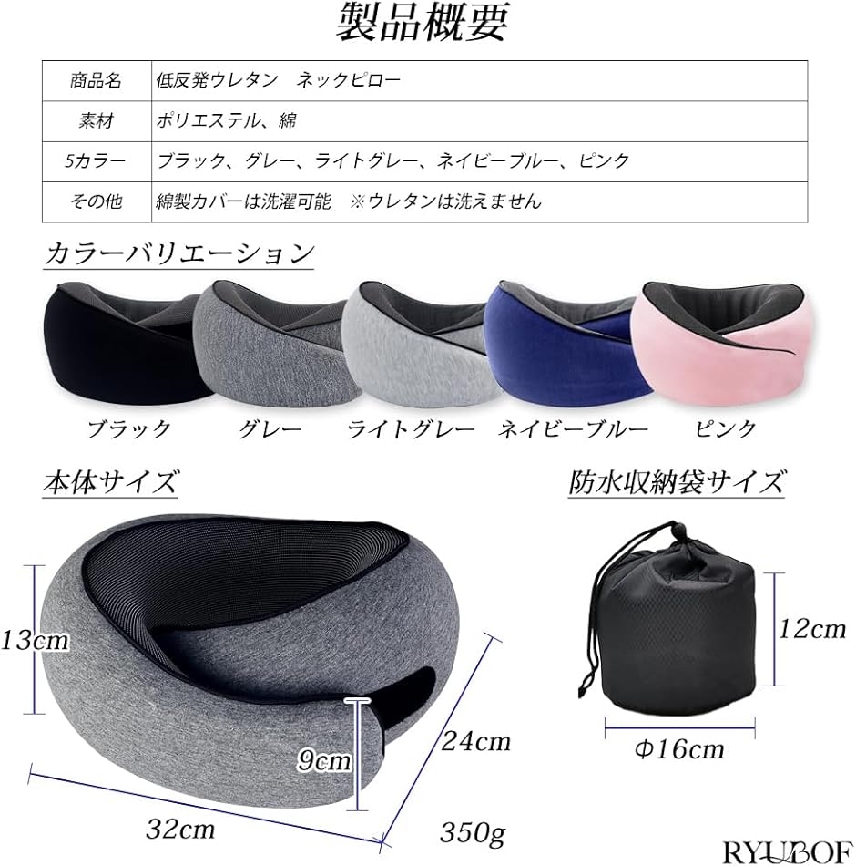 | 商品名 | RYUBOF ネックピロー 低反発 首枕 U型 飛行機 車 新幹線 旅行用 携帯枕 コンパクト 洗えるカバー 持ち運び便利 お昼寝 仮眠 旅行グッズ 0.35kg 軽量 防災用 |