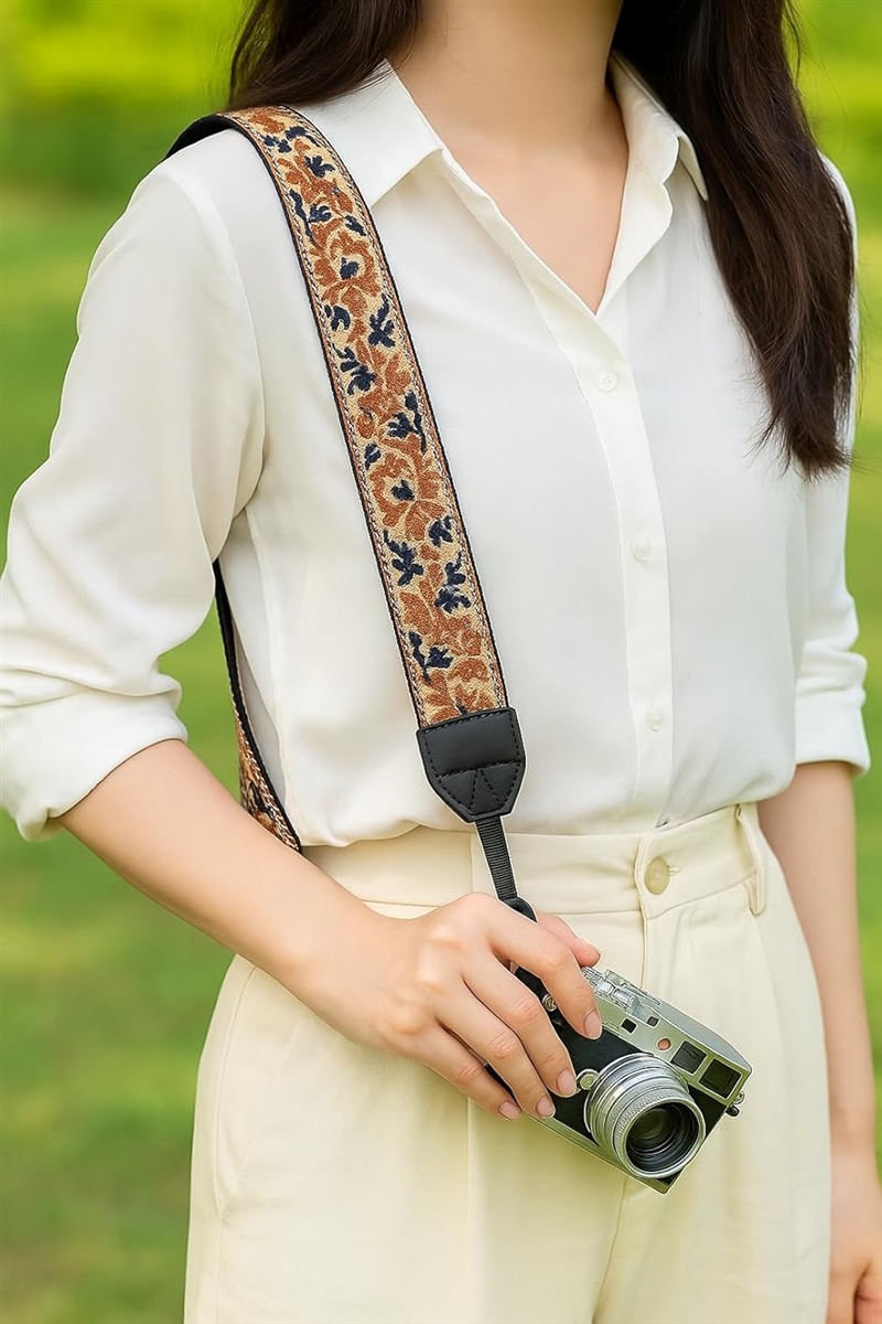 「ストレスを軽減」5cmの幅広で快適なコットンストラップは通気性が良く、カメラを長時間使用しても首や肩へのストレスを軽減し、より快適に使用できます。