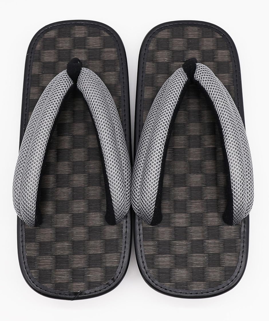| 商品名 | 雪駄 メンズ 市松 黒畳 グレー メッシュ鼻緒 ゴム底 日本製 |