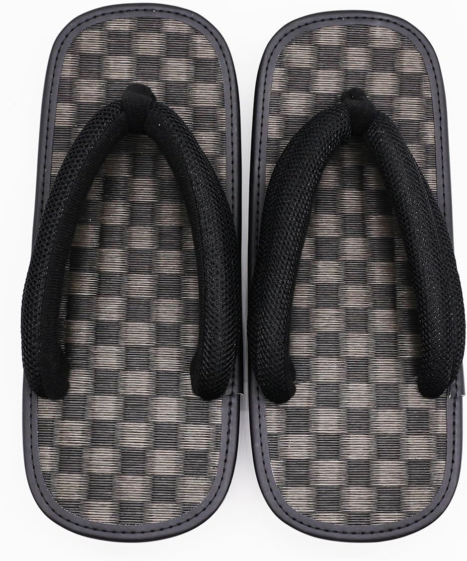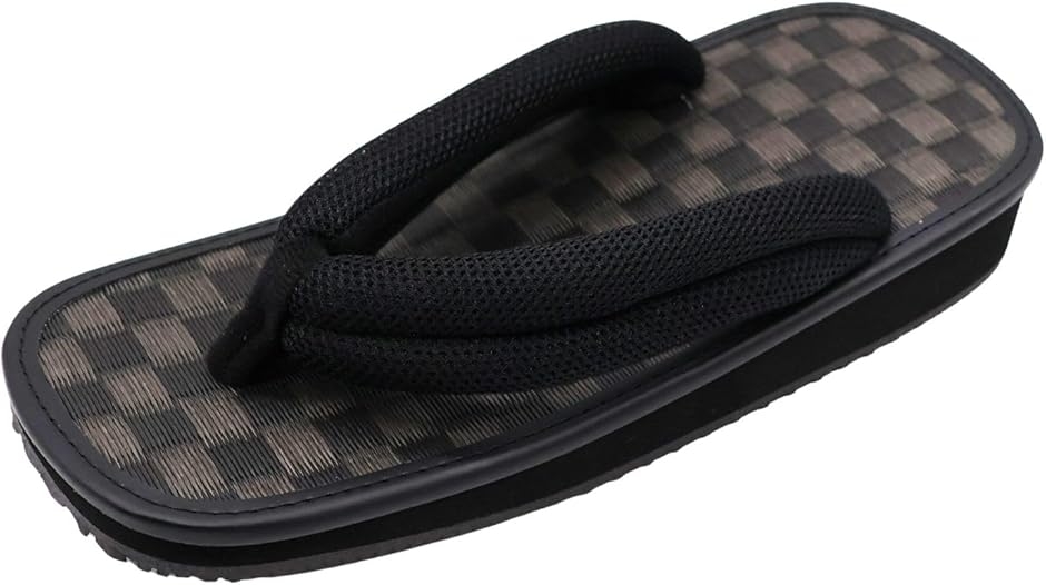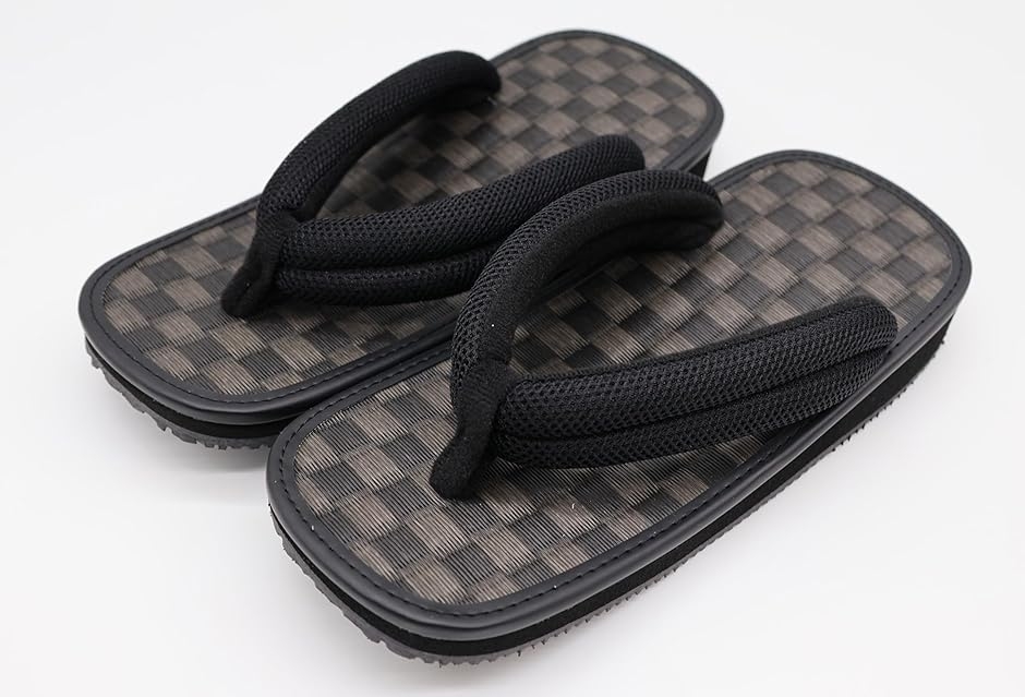 | 商品名 | 雪駄 メンズ 市松 黒畳 グレー メッシュ鼻緒 ゴム底 日本製 |