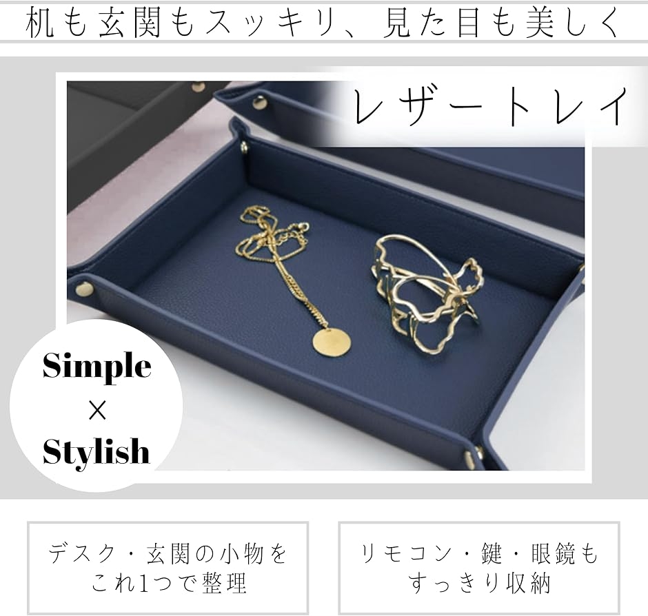 | 商品名 | レザートレイ 小物入れ 卓上 アクセサリートレイ PUレザー 小物収納 多用途 トレー おしゃれ 玄関 鍵置き デスク 整理 |