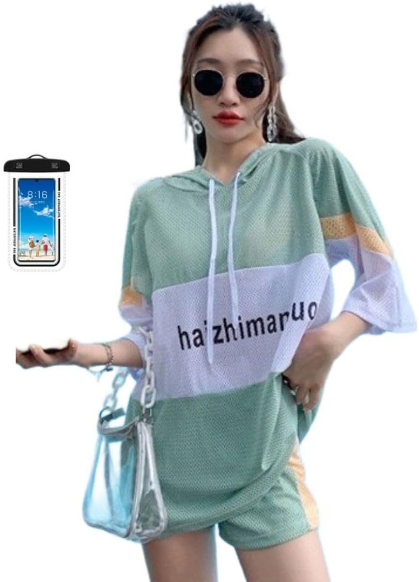 「ラッシュガード付き」オーバーサイズの半袖パーカーで、夏に嬉しいメッシュ素材。