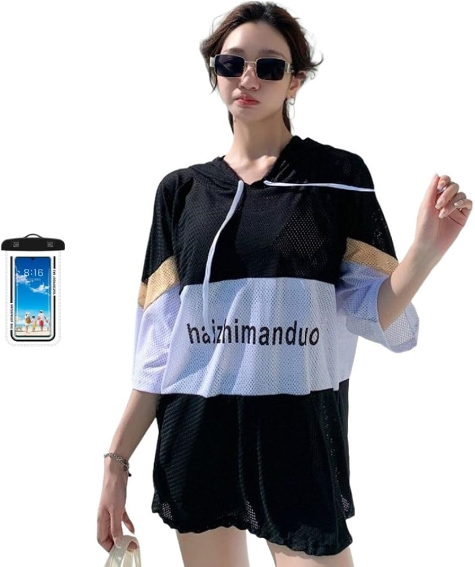「ラッシュガード付き」オーバーサイズの半袖パーカーで、夏に嬉しいメッシュ素材。