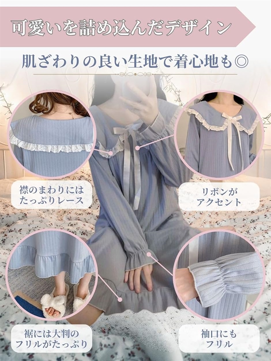 | 商品名 | ルーム ウェア ネグリジェ パジャマ ワンピース ナイト ホーム 長袖 レース プリンセス 通気性 |