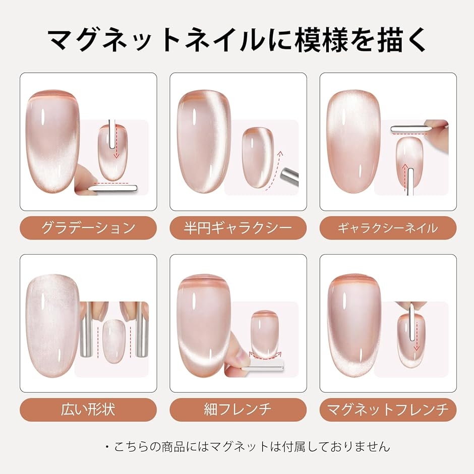 使いやすい:マグネットネイル ロマンティックで個性的なきらめきを放つマグネットネイル、透明感ありのジェルネイル 、ポリッシュタイプで塗りやすく、マグネットが動きやすいため、初プロでも初心者でも簡単に仕上がります。